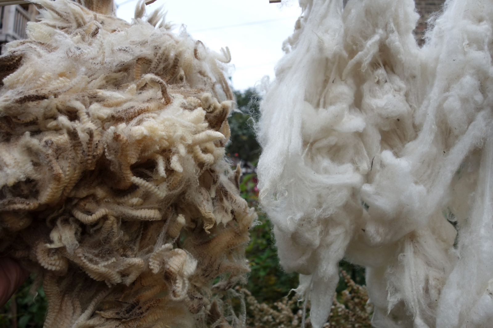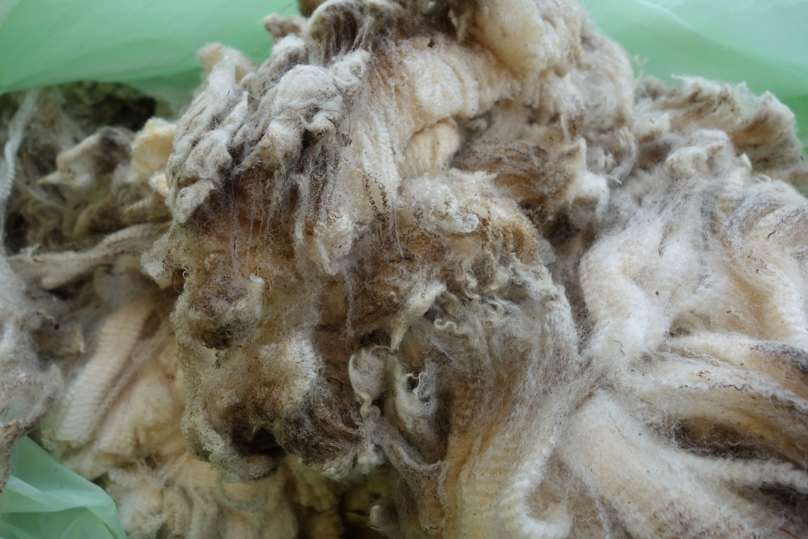 Raw wool. I don't remember the breed, but it's very soft and springy.
