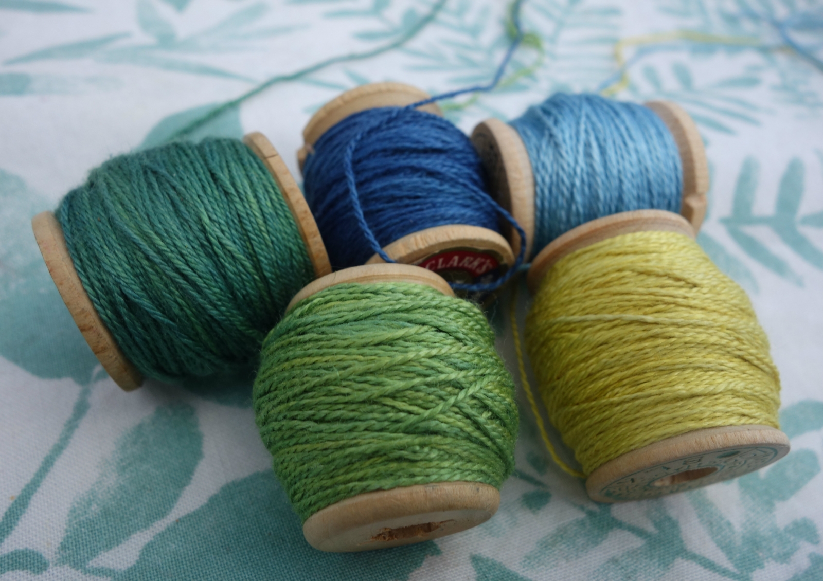 Greens, yellow and blues from weld, coreopsis flowers and indigo