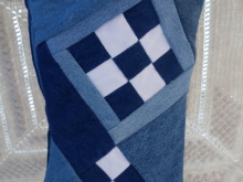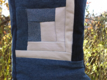 Blue Jean Christmas Stocking Upcycled Jeans Pocket Lumpy Log Cabin Quilted Denim Stocking Patchwork Lined 17"x 11"x10" Reduced Price