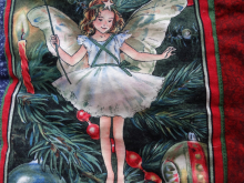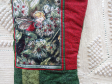 SOLD Christmas Tree Fairy Stocking Flower Fairy Quilted Patchwork Floral Crimson Red Green Stocking Lined 19"x 11"x 9" Flower Fairy Stocking