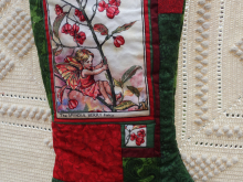 Spindle Tree Fairy Stocking Flower Fairy Quilted Patchwork Floral Crimson Red Green Stocking Lined 19"x 11"x 9" Flower Fairy Stocking