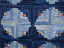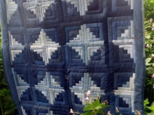 Blue Jean log Cabin Quilt with Handstitched Milkweed Seeds
