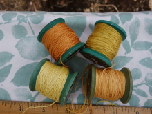 Silk Embroidery Thread Natural Plant Dye on 4 Vintage Wooden Spools Dyed with Cosmos Coreopsis and Marigold Flowers 20 Yards Each Spool