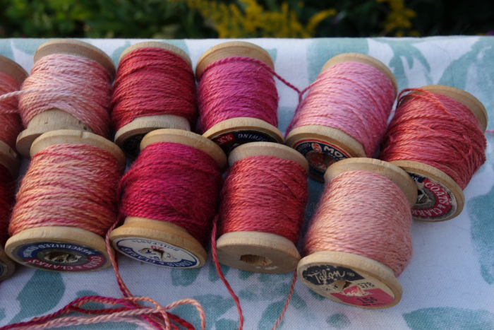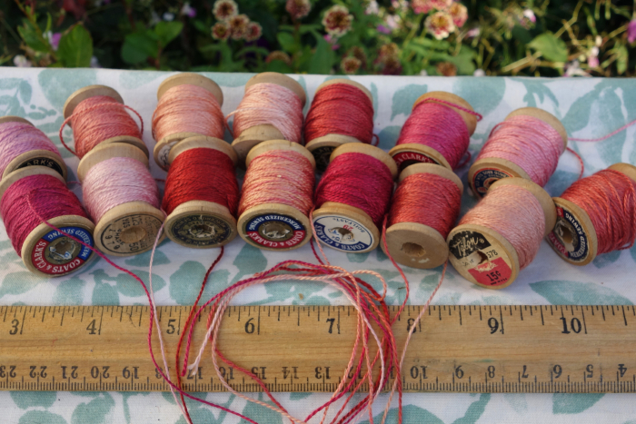 These threads were hand dyed and wound by me onto each vintage wooden spool.