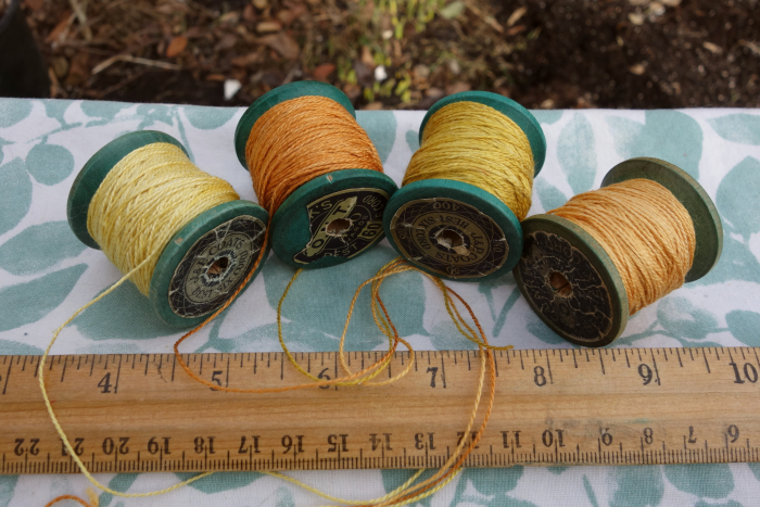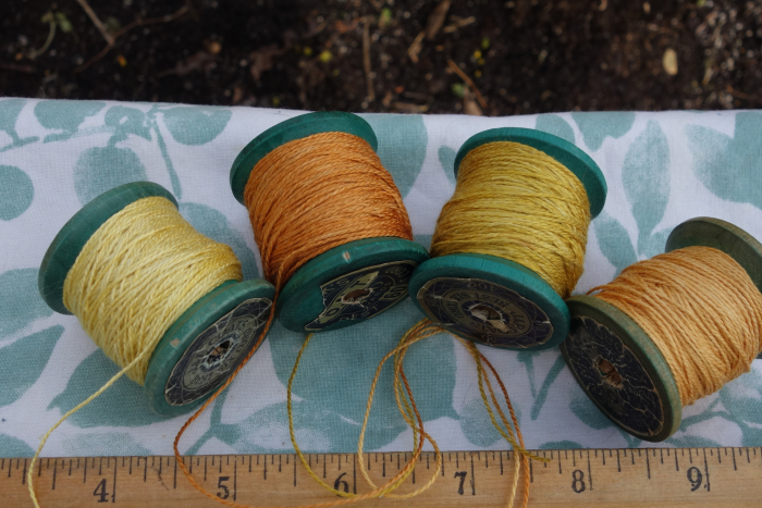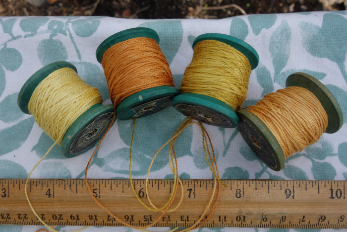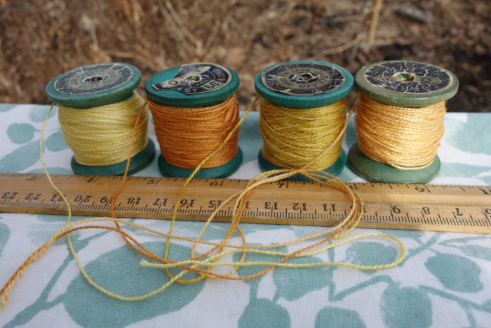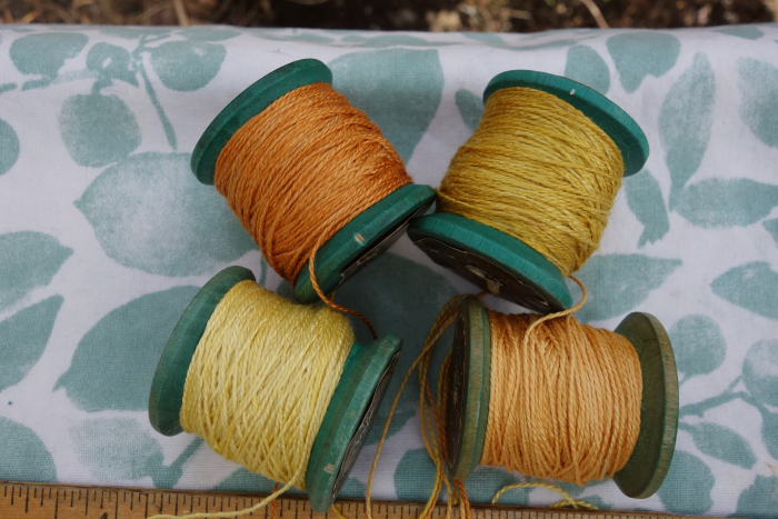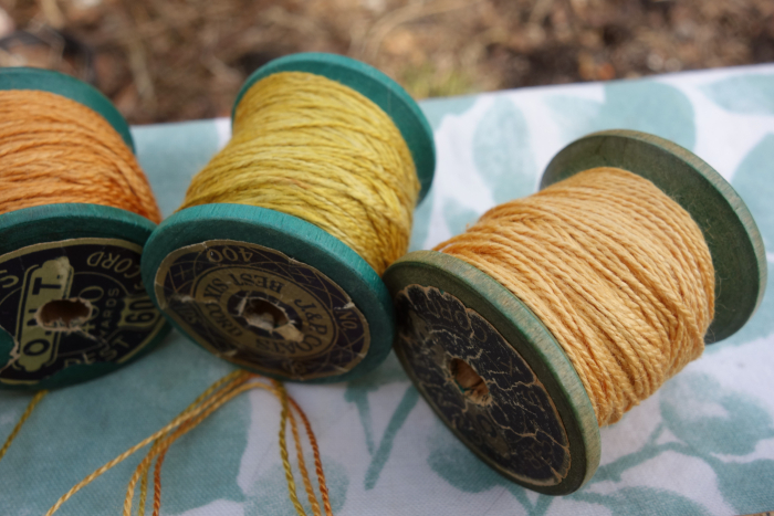 These threads were dyed with coreopsis, marigold, and cosmos flowers.