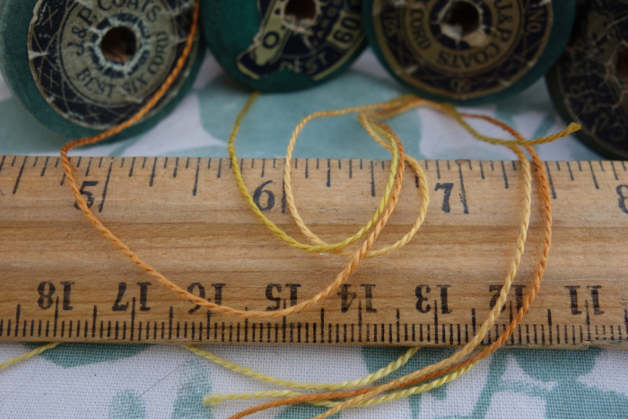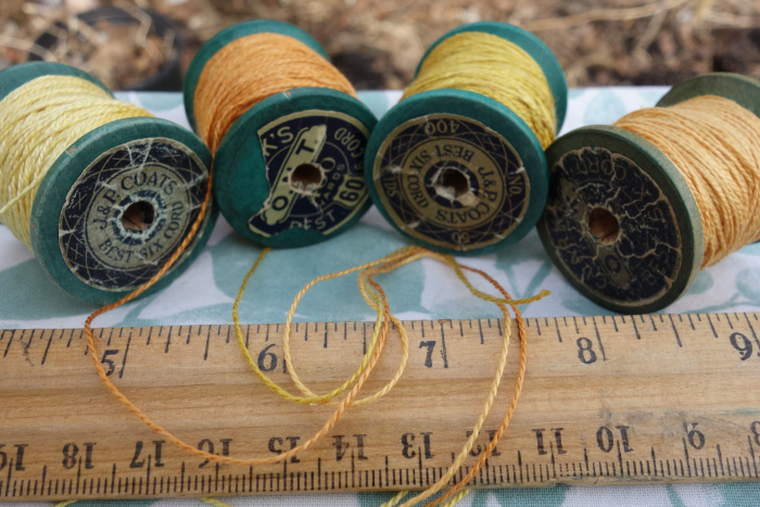 Silk Embroidery Thread Natural Plant Dye on 4 Vintage Wooden Spools Dyed with Cosmos Coreopsis and Marigold Flowers 20 Yards Each Spool